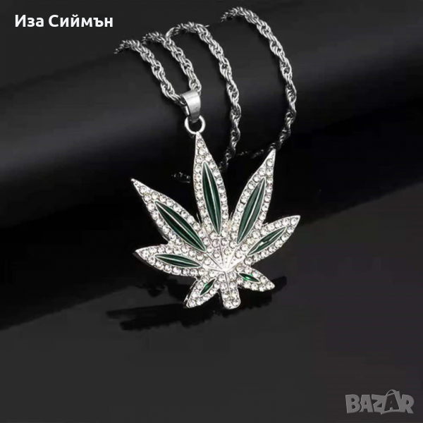 Колиета с листа на марихуаната, налични златен и сребърен цвят.