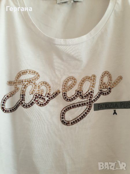 Патриция Пепе бяла тениска с блестящи орнаменти и сатенен гръб.