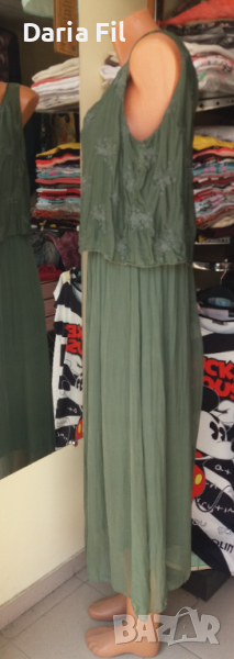 Зелена дълга рокля с дантелена платка в горната част, снимка 1 - Рокли - 36361002 Зелена дълга рокля с дантелена платка в горната част, снимка 2 - Рокли - 36361002 Зелена дълга рокля с дантелена платка в горната част, снимка 3 - Рокли - 36361002 1/3