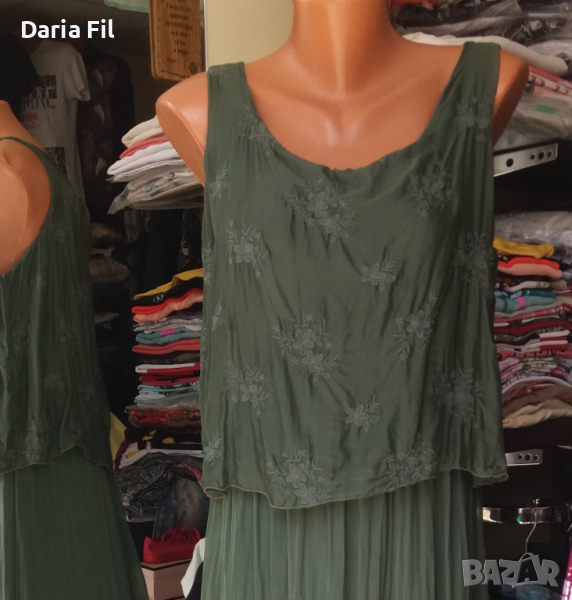 Зелена дълга рокля с дантелена платка в горната част → Обява 36361002