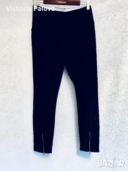Нов панталон с тесни крачоли,циповете са отпред.по дължината на крачолите има вставки,които имат разтегливост,така че панталонът стои точно по крака.талия-47см,дължина на крачола от колана-103см,отвътре-74см,крачолът горе-33см,долу-15см.