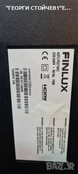 FINLUX 42FLYR274SC С ДЕФЕКТНА МАТРИЦА, снимка 1 - Части и Платки - 36366272 FINLUX 42FLYR274SC С ДЕФЕКТНА МАТРИЦА, снимка 2 - Части и Платки - 36366272 FINLUX 42FLYR274SC С ДЕФЕКТНА МАТРИЦА, снимка 3 - Части и Платки - 36366272 FINLUX 42FLYR274SC С ДЕФЕКТНА МАТРИЦА, снимка 4 - Части и Платки - 36366272 1/4