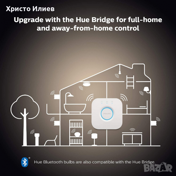 Представям Ви новата гама Bluetooth Крушки на Philips - сега е по-лесно от всякога да започнете с интелигентно домашно осветление. Не е необходима сложна инсталация, просто завийте новите крушки и започнете да контролирате интелигентните си LED светлини направо от кутията с помощта на „Philips Hue Bluetooth“ приложение. Или опитайте да управлявате осветлението си с гласа си, като използвате Alexa или Google Assistant за гласово управление без ръце. С гамата от бели нюанси на Philips, изпитайте комфортна, мека бяла светлина във вашата стая с напълно регулируемо интелигентно управление на осветлението.