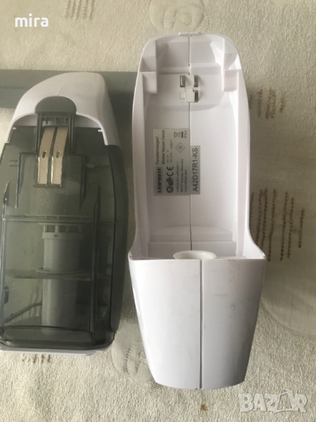 Вакуумен уред за прозорци Leifheit, уреда си работи безупречно със сменена батерия е има си зарядно, дръжката удължител се счупи.