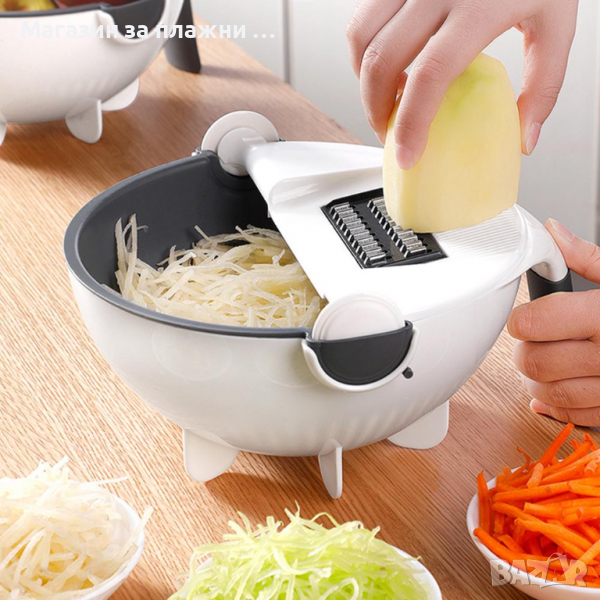 Точкова мултифункционална зеленчукова купа - ренде за нарязване и рендосване на зеленчуци и плодове. Отстранява водата на измитите зеленчуци. Всяко добро домакинство се нуждае от чистота и организираност в кухнята. Също и от добра функционалност на уредите, които притежава. За любителите на различни видове зеленчукови ястия и салати и други кулинарни специалитети, би било истинска радост да притежават съчетанието от купа и ренде. Бихте могли да забравите за тъпите ножове и старите ръждясали железни рендета. Този уред, съчетание от купа и ренде е прекрасен помощник в кухнята, особено когато семейството споделя принципите на здравословното хранене. Комплектът от купа с рендета и решетка улеснява много настъргването и нарязването на тънко на различни плодове и зеленчуци.