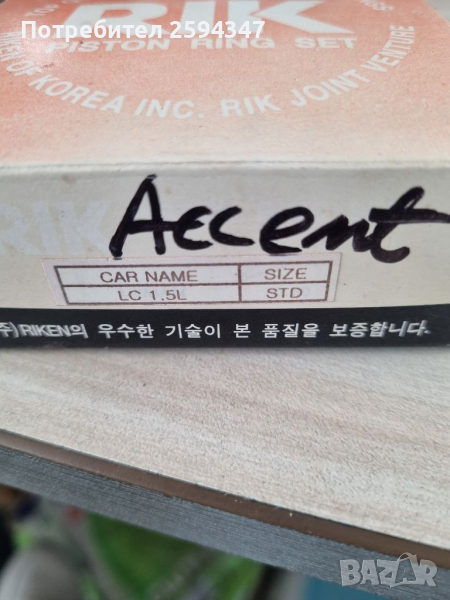 HYUNDAI ACCENT EXCEL ELANTRA LANTRA 1.5cc 8V-SOHC 1995-2000г СЕГМЕНТИ STD RIK KOREA → Обява 36375829