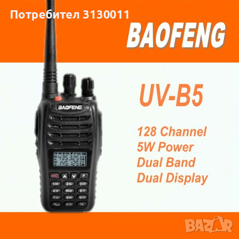 Радиостанцията е с оригинална батерия BAOFENG BL-5 . 1/5W Мощност