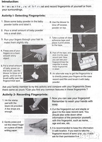 Всяка дейност ще ви накара да действате и да мислите като истински криминалист. Търсете и анализирайте пръстови отпечатъци.