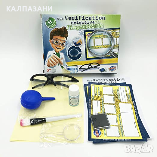 Прекрасен комплект за ролева детективска игра, за да научите как да откривате и събирате пръстови отпечатъци точно като експерт по криминалистика.