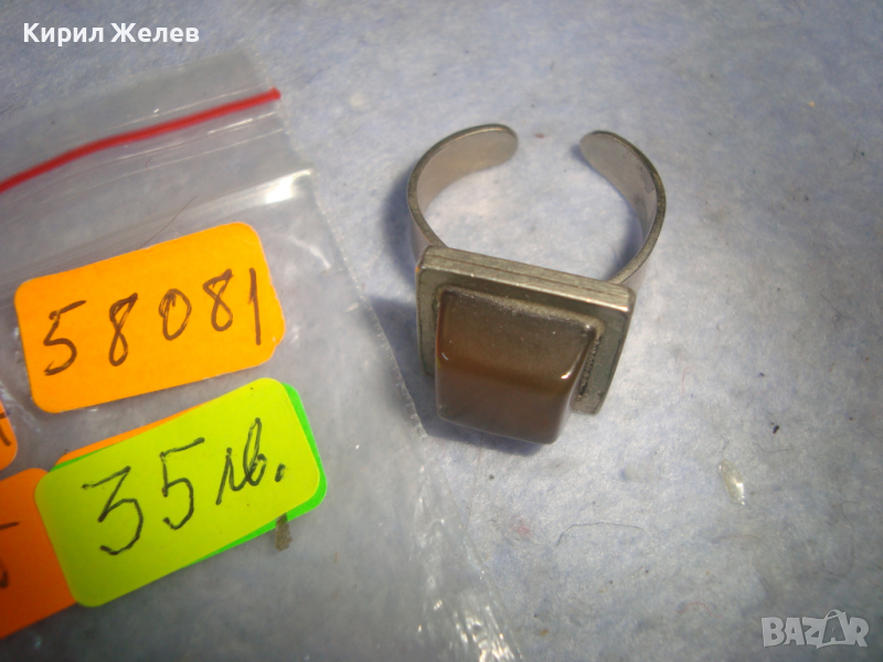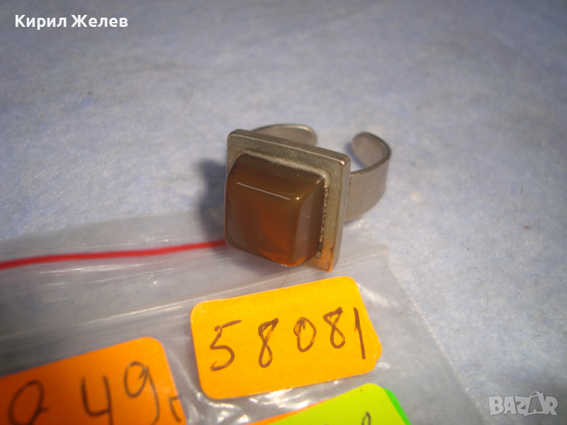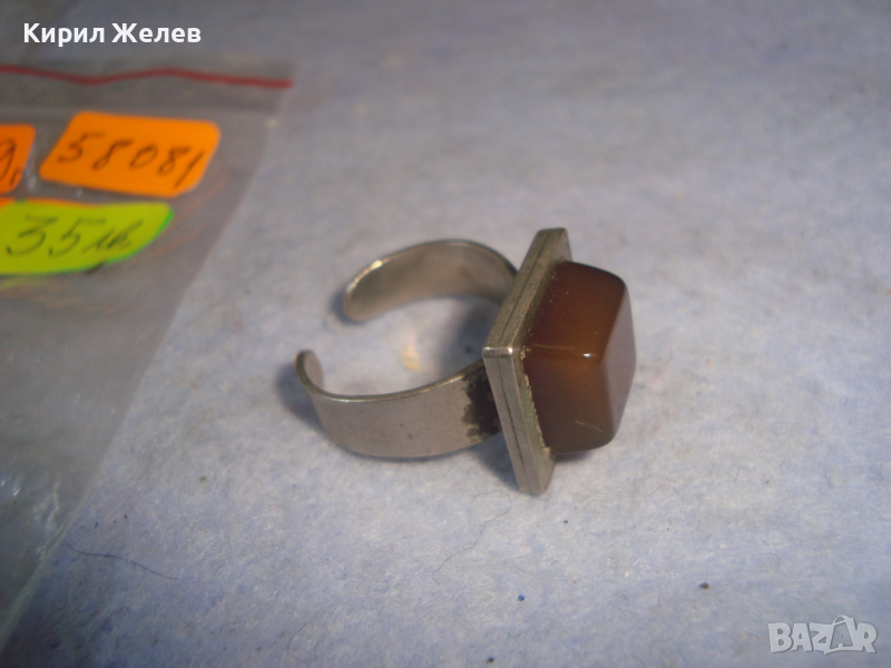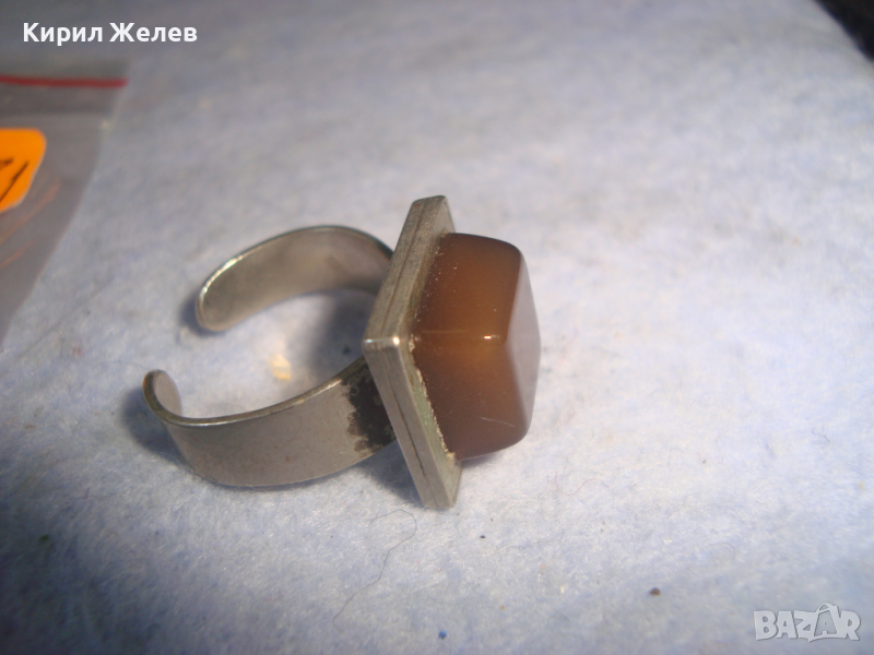 КЕХЛИБАРЕН ПОСРЕБРЕН или СРЕБЪРЕН СТАР АРТ ДЕКО ПРЪСТЕН с ГОЛЯМ НАТУРАЛЕН ШЛИФОВАН КЕХЛИБАР 58081