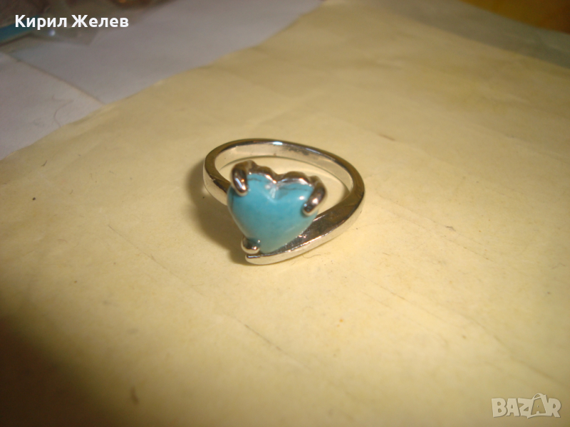 ПОСРЕБРЕН СЪРЦЕВИДЕН ТЮРКОАЗЕН БЕЛ ЕПОК СТИЛ ПРЪСТЕН 22683