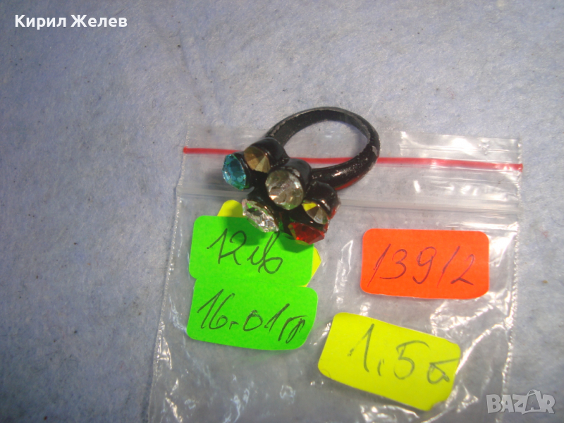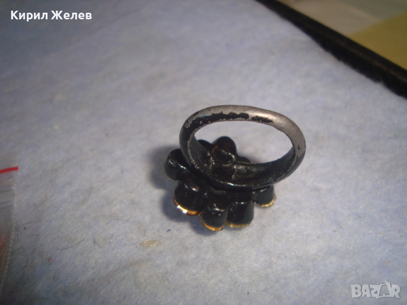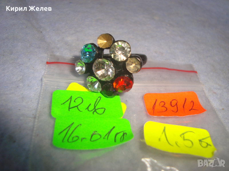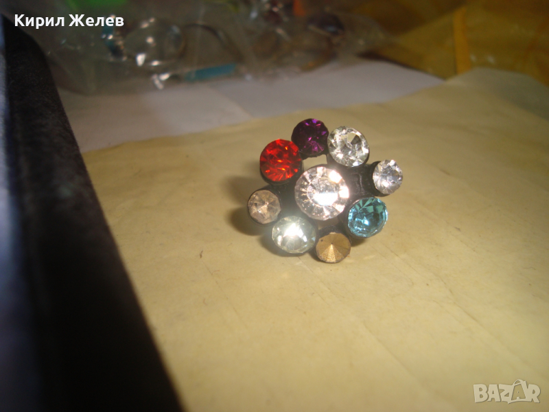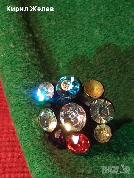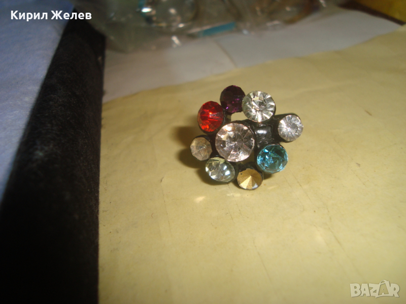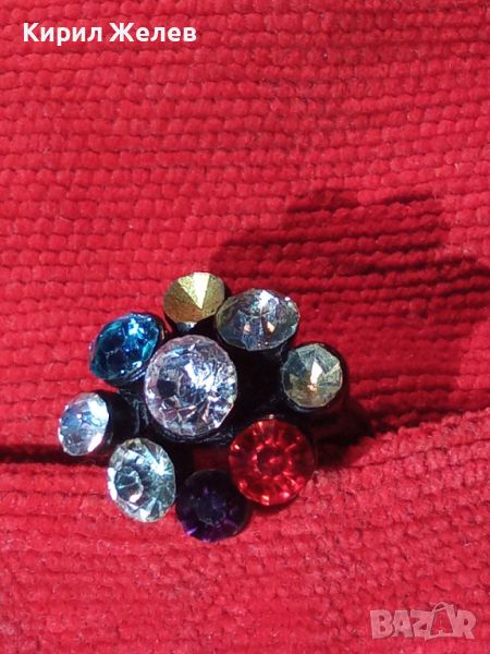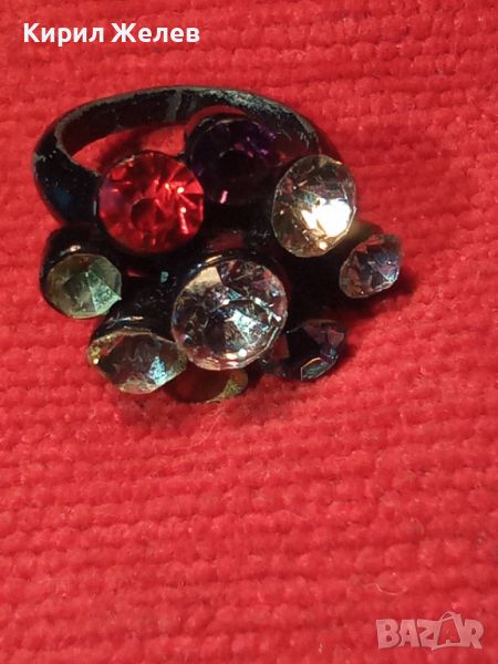 КРАСИВ ВИНТИДЖ РЕТРО - АРТ ПРЪСТЕН ОЛОВЕН ЛАКИРАН с ФАСЕТИРАНИ ЦВЕТНИ КРИСТАЛИ 13912