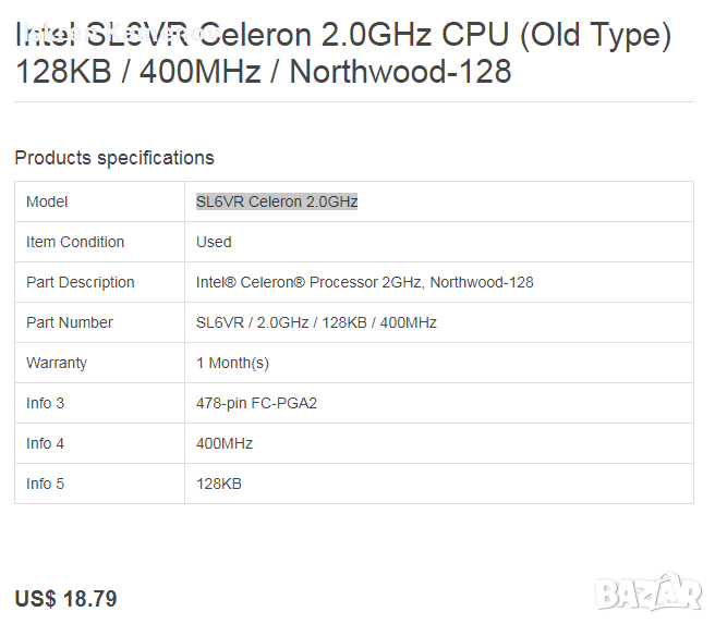 Intel Celeron 2.0GHz CPU → Обява 36378097