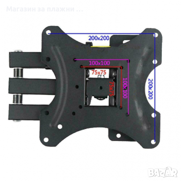 Стабилна и удобна универсална ТВ стойка. Тази универсална и практична стойка за телевизор е разумен избор както за дома, така и за вашия офис. Изработена е в елегантен дизайн с изчистени линии, а при монтаж остава почти невидима за човешкото око. За разлика от обичайните фабрични статични стойки за телевизор, тази притежава сложна конструкция, която е скрита зад тялото на екрана, а на външен вид изглежда изключително семпло и не нарушава пропорциите на интериора на помещението. Изработена е от подсилена студено-пресована стомана и тежи едва 1,8 кг, но гарантира стабилност и сигурност за вашия телевизор. Издържа на натоварване до цели 35 кг и можете спокойно да я използвате за различни по размер екрани с резолюция от 14 до 42 инча. Освен металните съставни части, в комплекта ще получите и всички необходими за инсталация и поставяне допълнителни принадлежности като винтове, болтове и други.