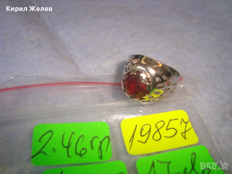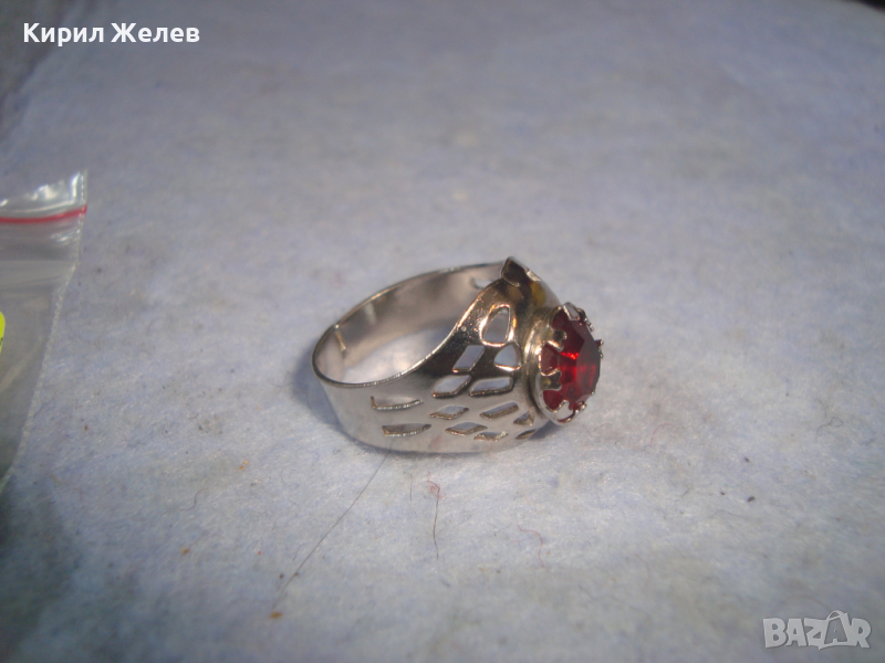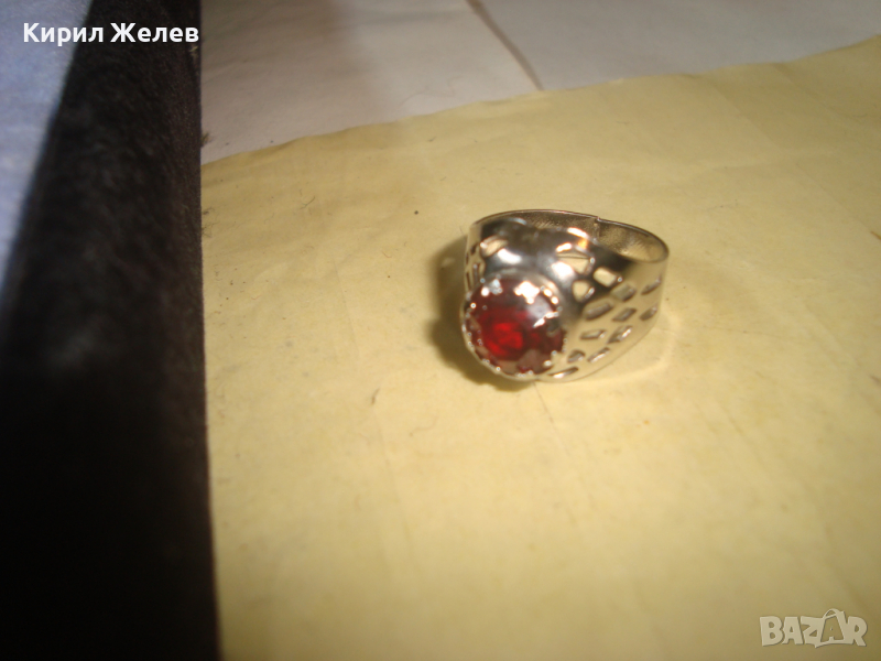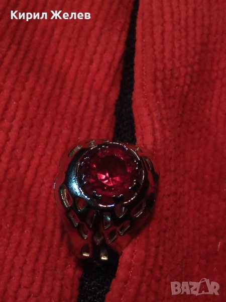 СРЕБРИСТ АЖУРНО ИЗРАБОТЕН СКЪПОЦЕНЕН АРТ ПРЪСТЕН с КРАСИВО ФАСЕТИРАН ЧЕРВЕН КРИСТАЛ 19857