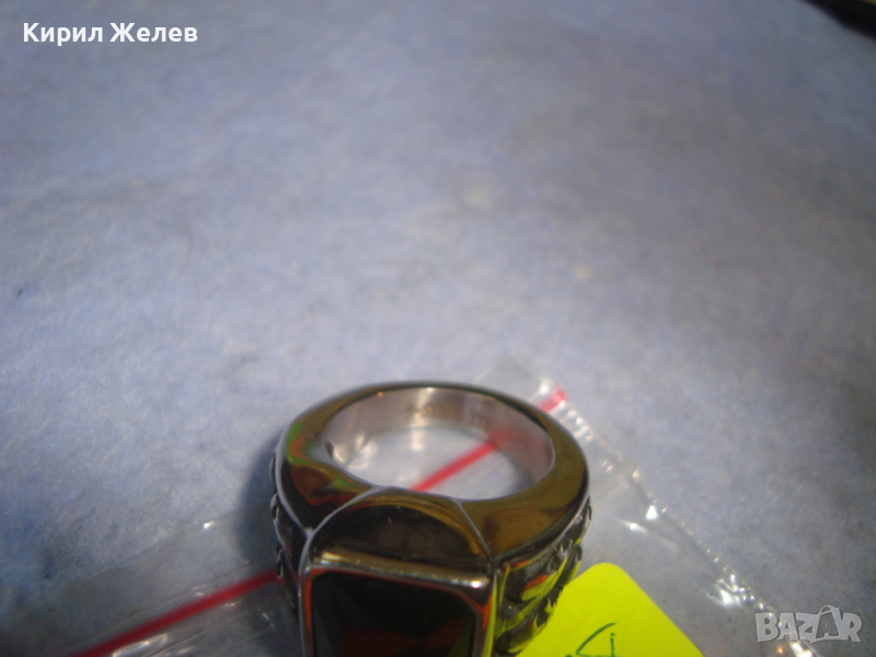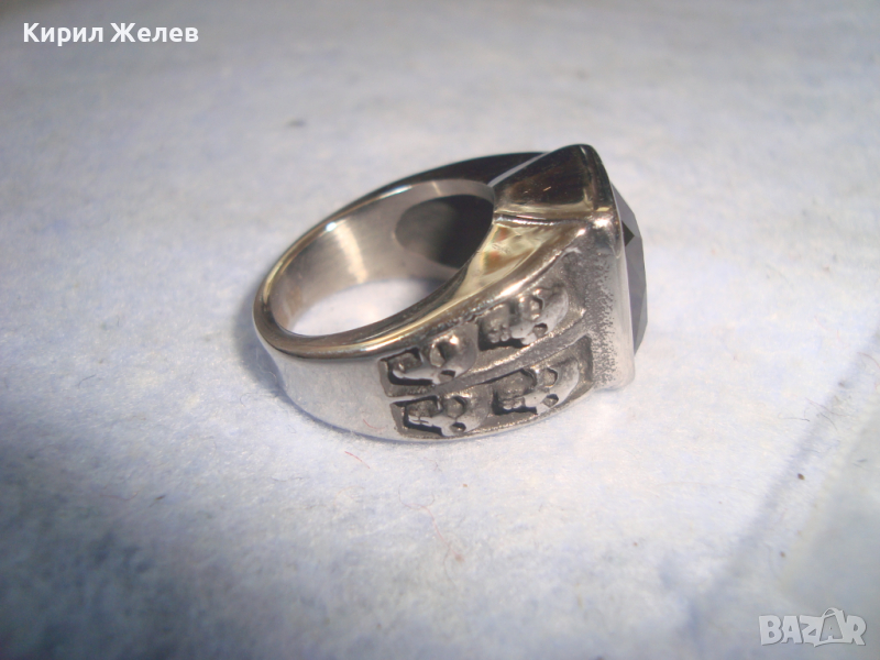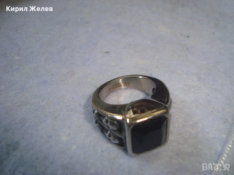 СРЕБРИСТ ОРНАМЕНТИРАН ОКСИДИРАНА БЛАГОРОДНА НЕРЪЖДАЕМА СТОМАНА ПРЪСТЕН с ФАСЕТИРАН ЧЕРЕН ОНИКС 6328