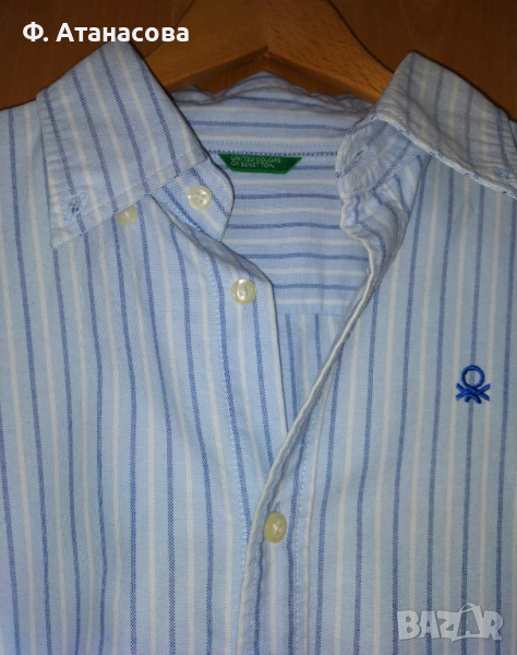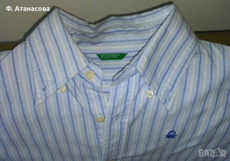 Предлагам чисто нова страхотна мъжка риза на United Colors of Benetton/ Бенетон, размер М (мога да пратя точни размери, ако желаете). Ризата е без етикет, но е чисто нова, не е носена никога, и е в перфектно състояние. Състав: 100% памук.