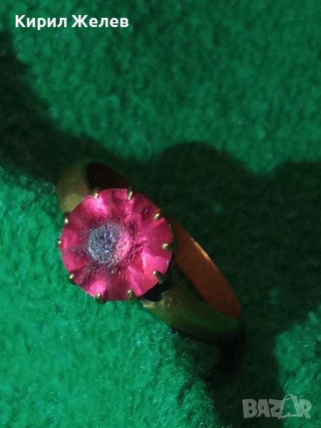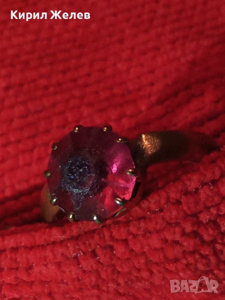 СТАРИНЕН БРОНЗОВ СКЪПОЦЕНЕН РЕТРО АРТ ПРЪСТЕН с АМЕТИСТ 19630