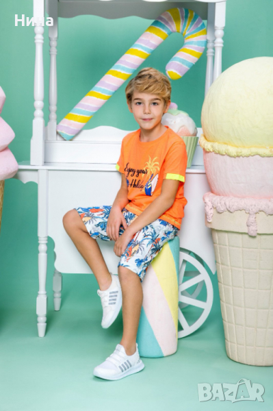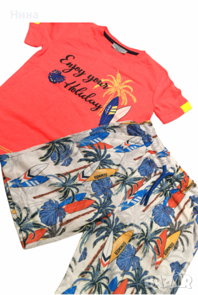Хавайски летен сет за момчета 🌴 Слънчеви цветове и морски апликации 🏄♂️ Налични размери: 5/6 години, 8/9 години и 9/10 години 🛍️ За още моделчета разгледайте и останалите обяви в профила ми.