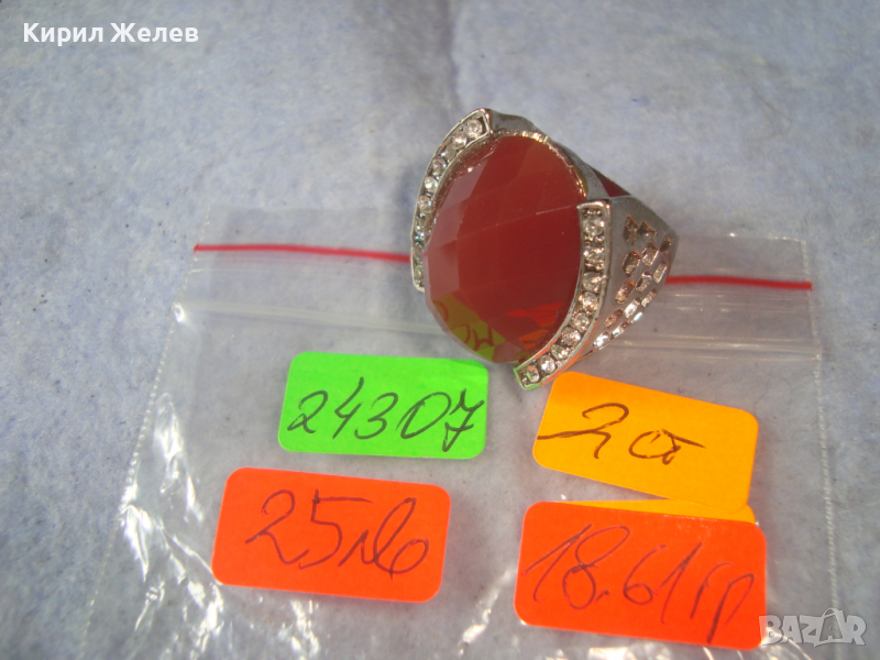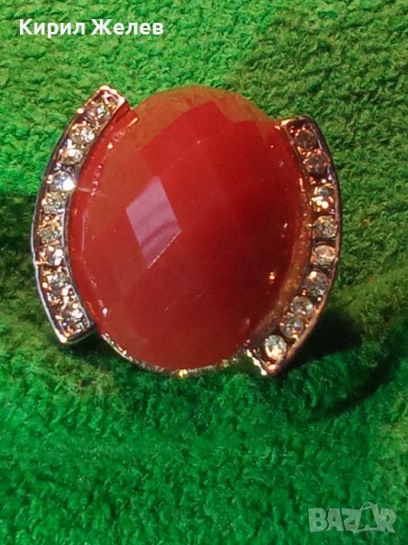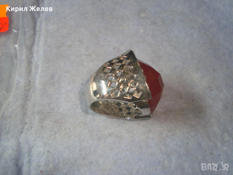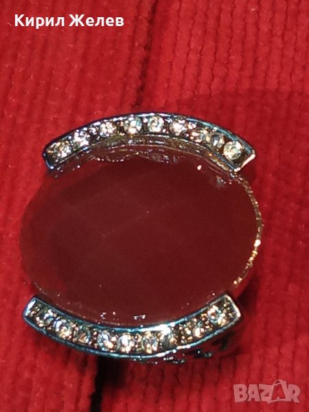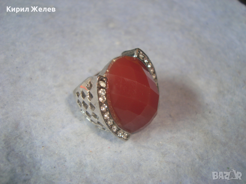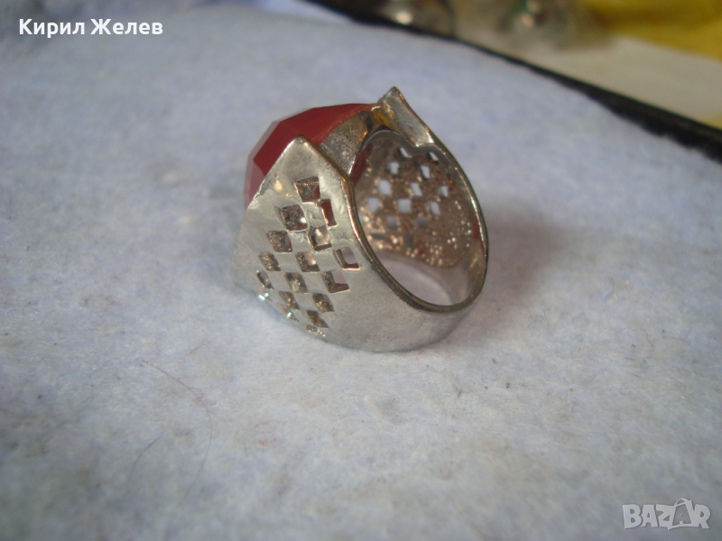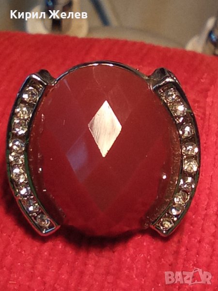 ПОСРЕБРЕН КРАСИВ АРТ ДЕКО ПРЪСТЕН с ЦИРКОНИ и ОГРОМЕН ФАСЕТИРАН ЧЕРВЕН БОХЕМСКИ КРИСТАЛ 24307