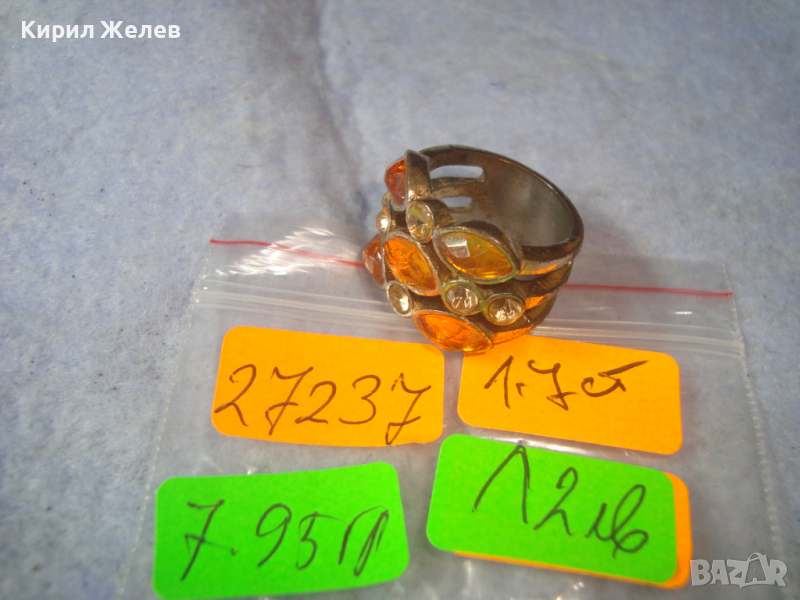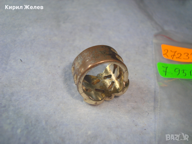 РЕТРО - ВИНТИДЖ МЕДЕН БРОНЗИРАН АРТ НУВО ПРЪСТЕН с ФАСЕТИРАН ЦИТРИН КРИСТАЛИ 27237