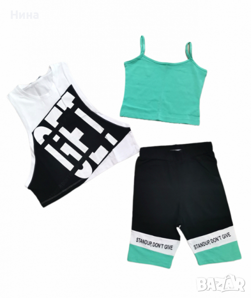 Комплект от 3 части, в черно- бяла комбинация с тюркоаз ✨ Размери: 134 см, 140 см, 146 см, 152 см, 158 см и 164 см 🛍️ За още моделчета разгледайте и останалите обяви в профила ми.