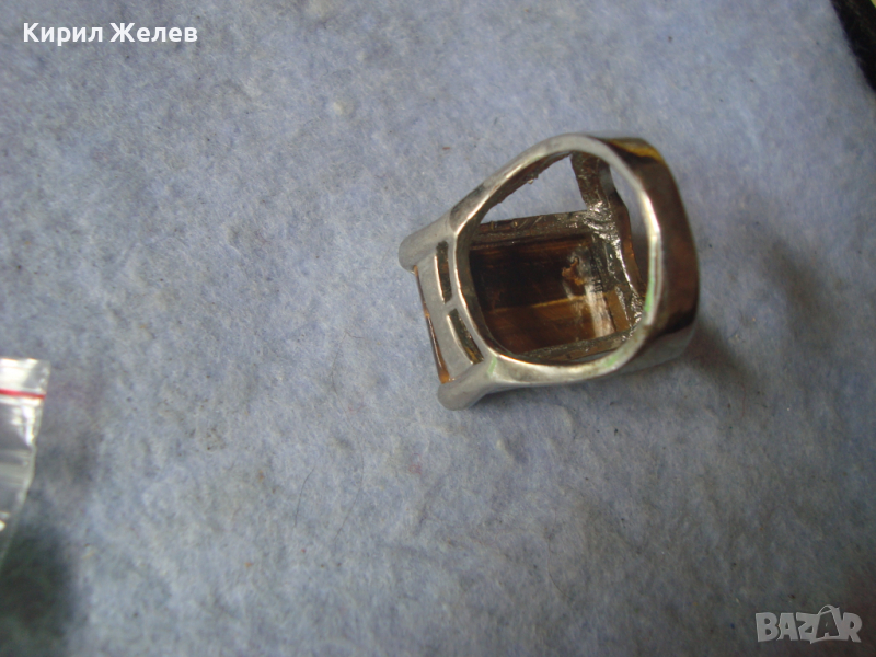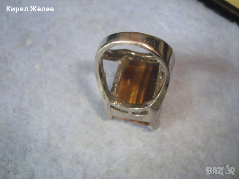 СТИЛЕН ПОСРЕБРЕН СКЪПОЦЕНЕН АРТ ДЕКО ПРЪСТЕН с ШЛИФОВАН КАМЪК НАТУРАЛНО ТИГРОВО ОКО 26624
