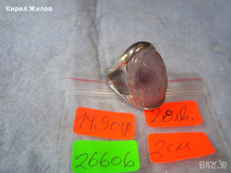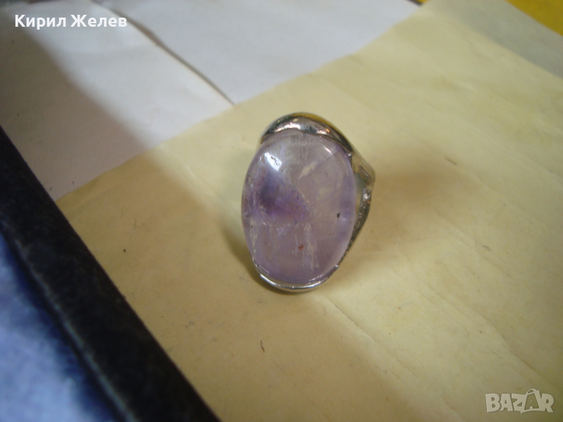 ПОСРЕБРЕН ФЕШЪН АРТ ПРЪСТЕН с НАТУРАЛЕН ЮВЕЛИРНО ШЛИФОВАН КАМЪК - АМЕТИСТ 26606