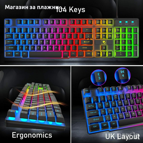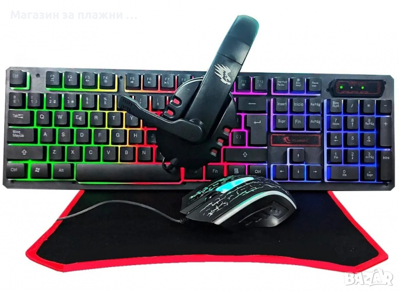 Чисто новият Геймърски комплект E-SPORTS за компютър от 4 части с LED светлина, 55 лв