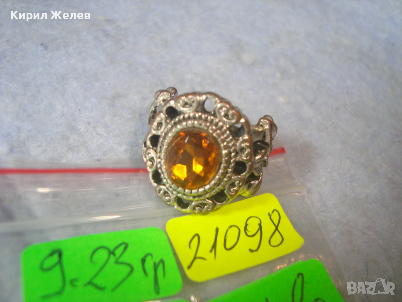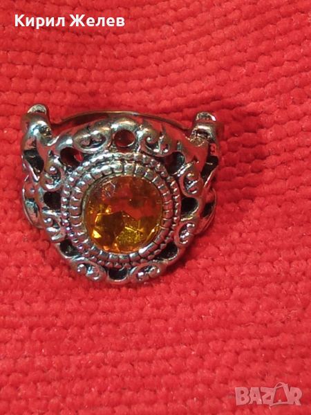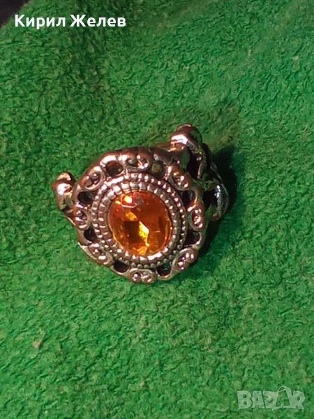 Стар ПОСРЕБРЕН АРТ НУВО АЖУРНО ИЗРАБОТЕН СКЪПОЦЕНЕН МЕДЕН ПРЪСТЕН с ФАСЕТИРАН ЦИТРИН 21098