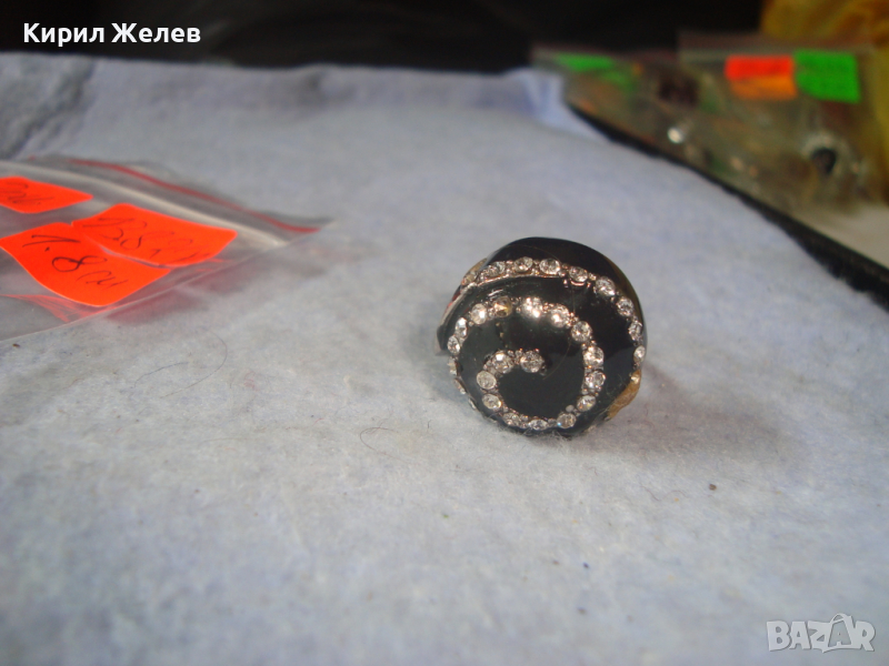 КРАСИВ ЕМАЙЛИРАН СКЪПОЦЕНЕН АРТ НУВО ПРЪСТЕН с ЦИРКОНИ НИКЕЛИРАН 26619