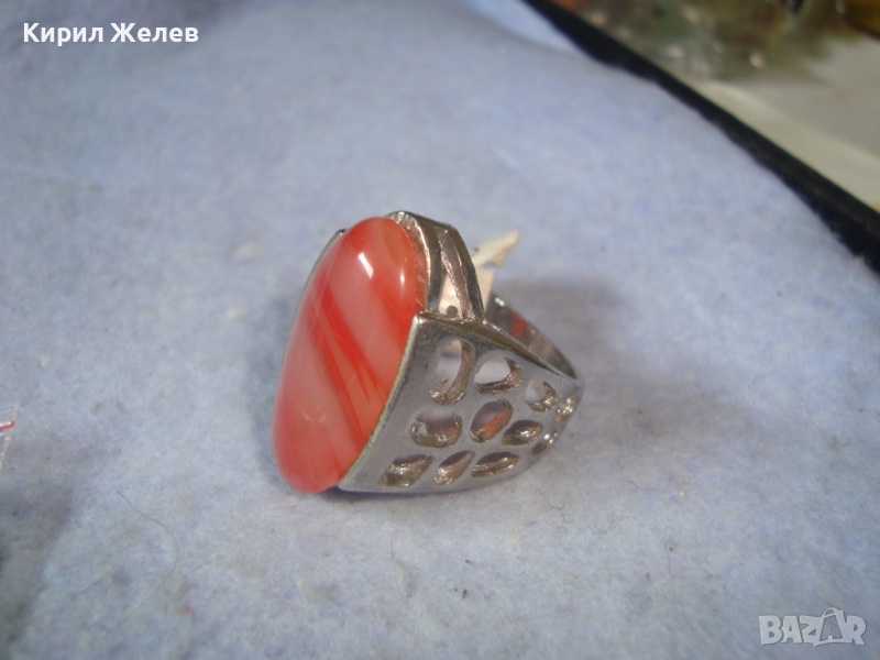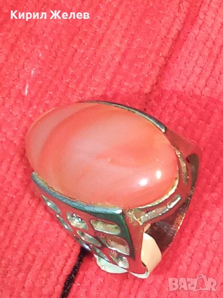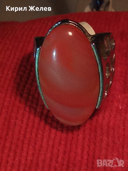 КРАСИВ НОВ ФЕШЪН АРТ ПОСРЕБРЕН СКЪПОЦЕНЕН ПРЪСТЕН с ЮВЕЛИРНО ШЛИФОВАН и ПОЛИРАН КАМЪК АХАТ 26607