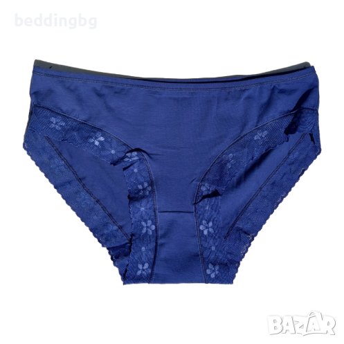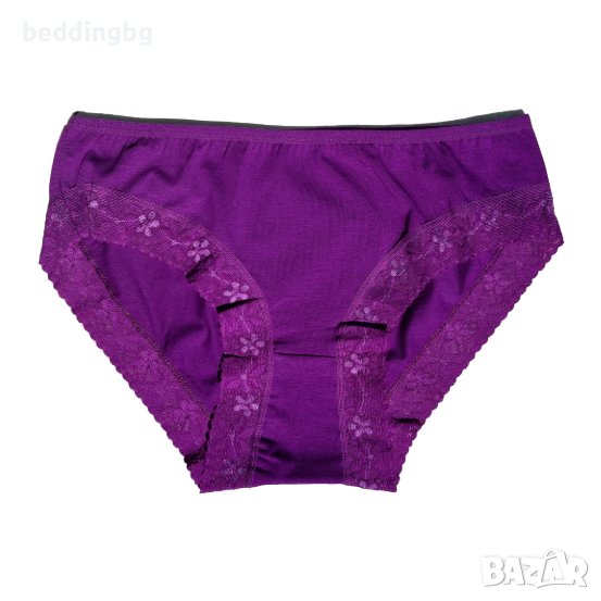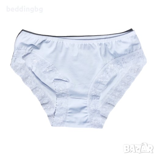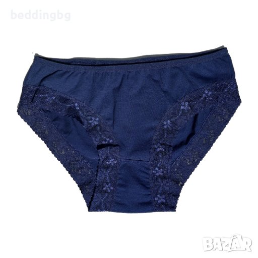 Дамски Памучни бикини средно висока талия, удобна кройка с красив дантелен фистон. Предлагаме ги в няколко цвята бял, син, тъмносин, бледорозов, бежов, кайсия, бледолилав, виолетов и черен.