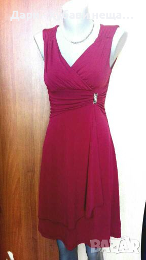 Винен цвят рокля, с акцент брошка🍀❤XS,S,M(38)❤🍀арт.4022