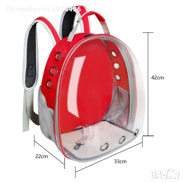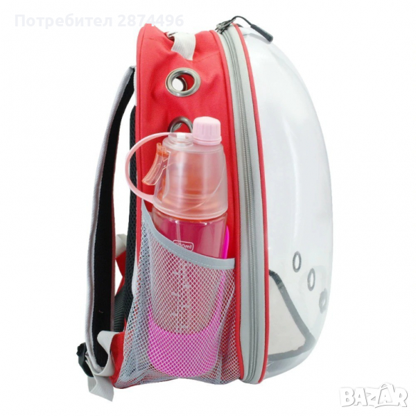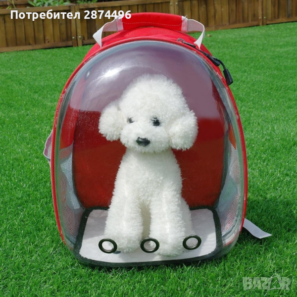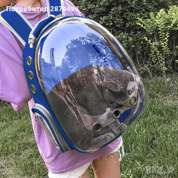 Раница чанта за пренасяне и разходка на котка или куче с прозрачна капсула за наблюдение и отвори за въздух , изработена от PVC и акрил раницата е водонепропусклива и не се цапа лесно, с ципове за лесно отваряне/затваряне. Страхотен начин да разхождате безопасно вашите по-малки домашни любимци като котки, кучете, зайци и други.