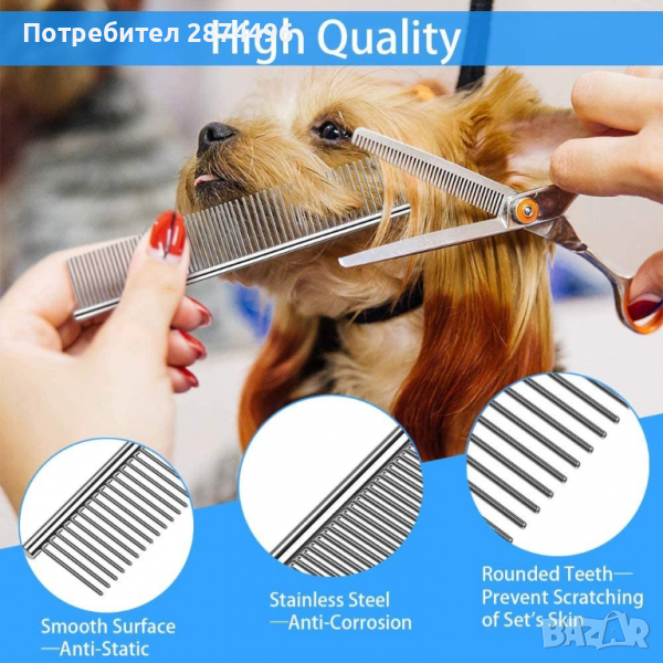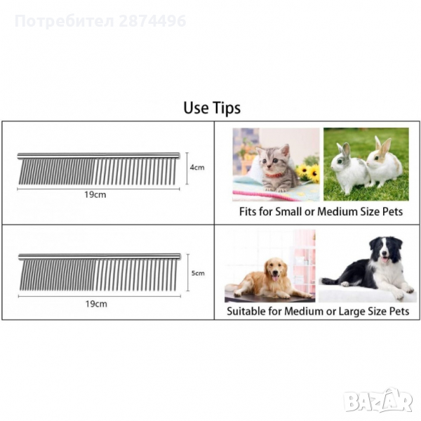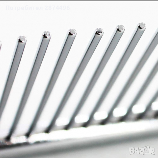Метален гребен с тесни и едри зъби с дължина 19 см. дължина и 4 или 5 см. ширина. Метален гребен за придаване на завършен вид на прическата.