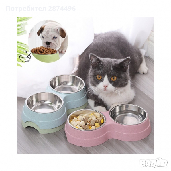 Размери на двойната купичка: 24.5 х 13.5 х 4.6 см.