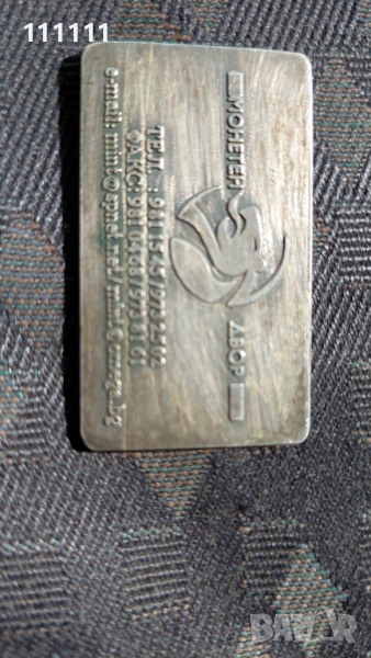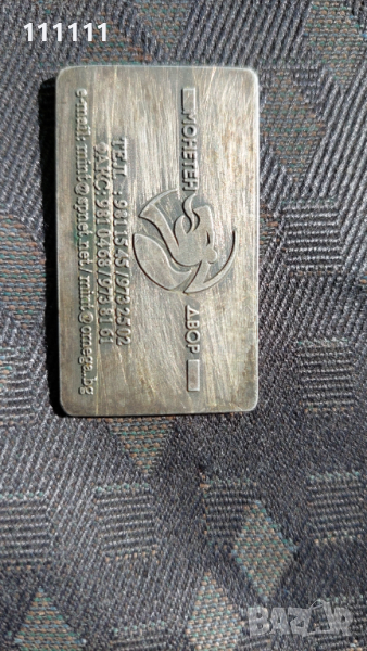 Плакет Метална визитна картичка на Монетния двор посребрена → Обява 36398670