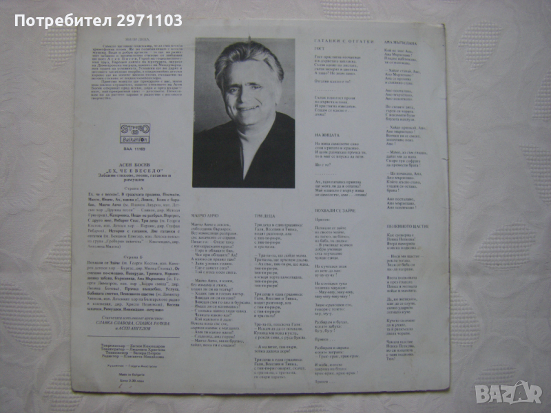 Грамофонна плоча - ВАА 11169 - Асен Босев. «Ех, че е весело», забавни стихове, песни, гатанки и римушки