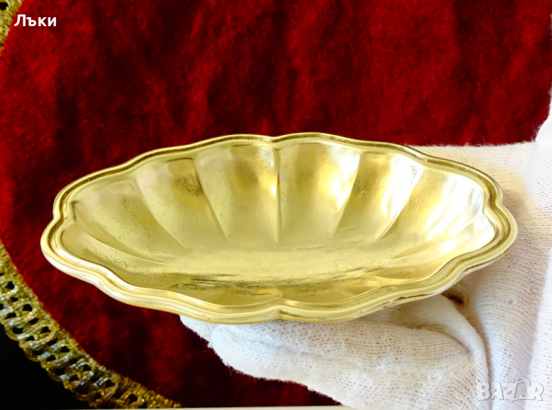 Старинна немска купичка за ядки,съд за сервиране на хайвер,горчица и др.,ръчно отлята от масивен бронз с