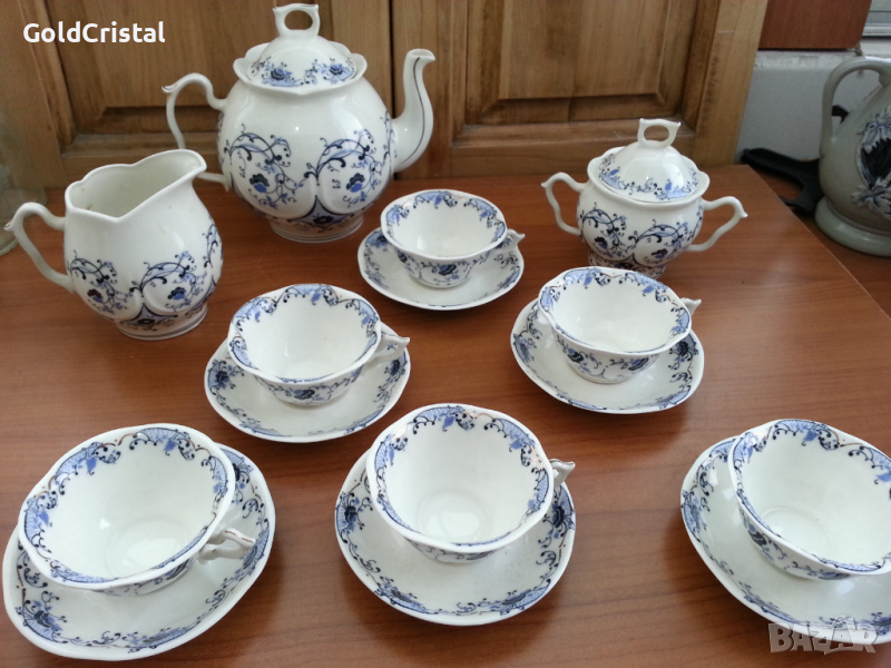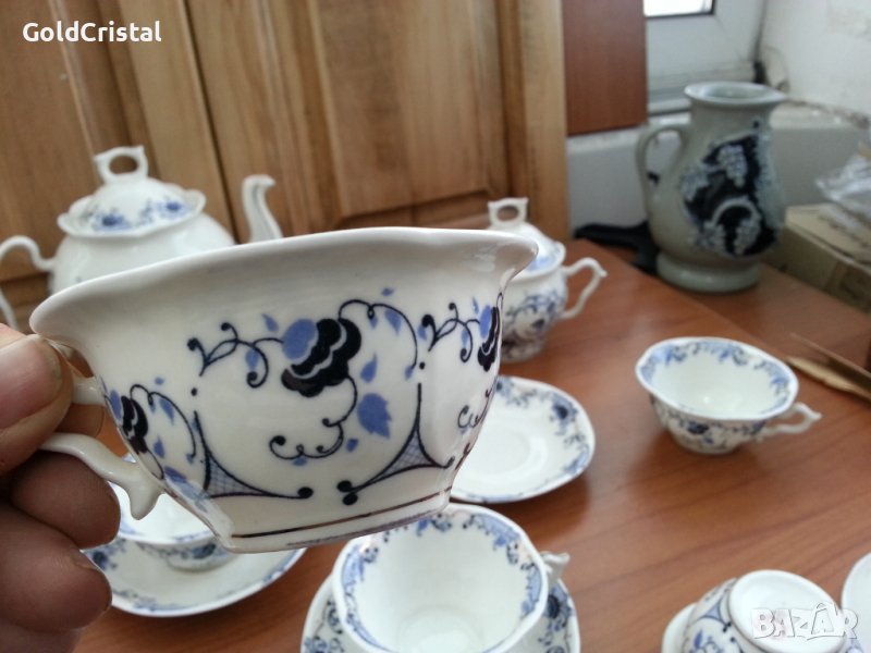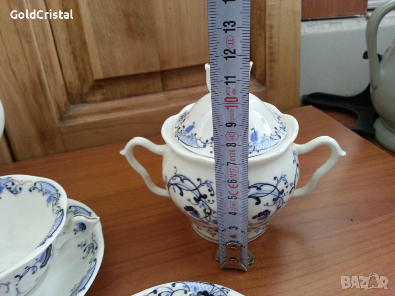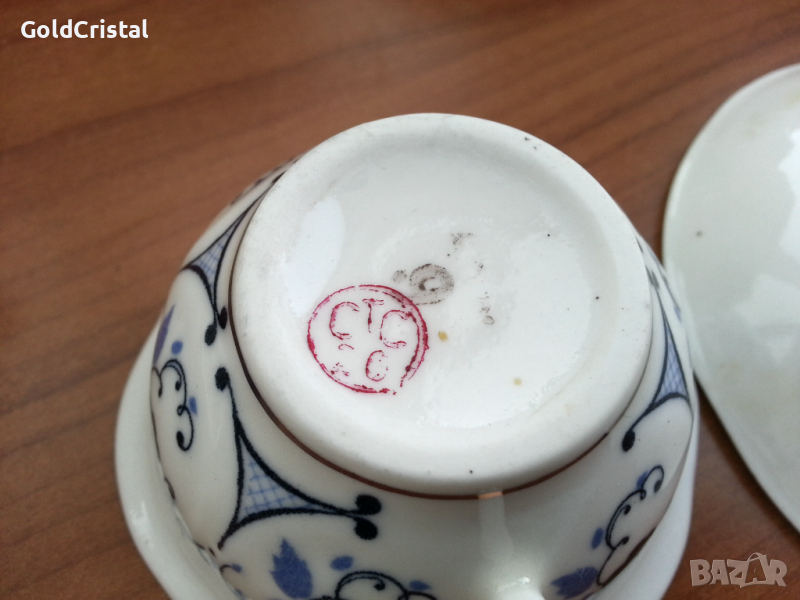 Стар руски порцеланов сервиз за кафе Фин костен порцелан 6бр чашки с чинийки чайник захарница латиера сервиз комплект сет лот ретро арт декор винтидж колекция стари антикварни предмети обзавеждане за дома и семейството подходящи за подарък за ценители и колекционери