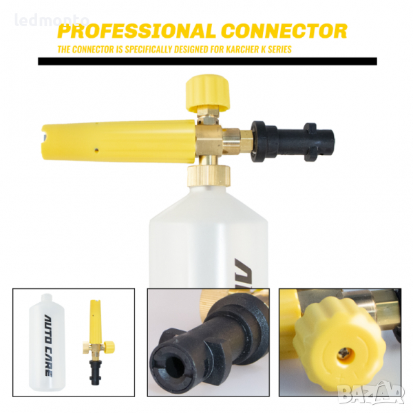 За най-добри резултати използвайте топла вода, препоръчва се 20% шампоан +80% вода. Разклатете бутилката с течност, за да смесите шампоана с вода старателно. Прикрепете бутилката с течност към модула за пяна. Прикрепете фитинга/адаптера към пистолета за миене под налягане и можете да започнете да играете с него