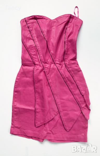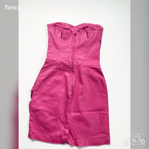 Секси къса рокля по тялото. Размер S. Платът има еластичност. Закопчаване с метален цип на гърба. С ефектна предница. Без презрамки. Платът наподобява дънков. Закупена от Англия. В отлично състояние, без забележки.