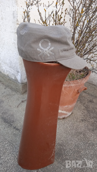 Шапката е 58 номер ,от лимитирана серия е , и е от зелен деним 100% памук , много е актуална и е буквално нова използвана е няколко пъти .Логото на фирмата отстрани и коланчèто между козирката и задната част на шапката са извезани и декорирани с финни кристали Сваровски вижда се на снимките. .Цената може да се коментира .