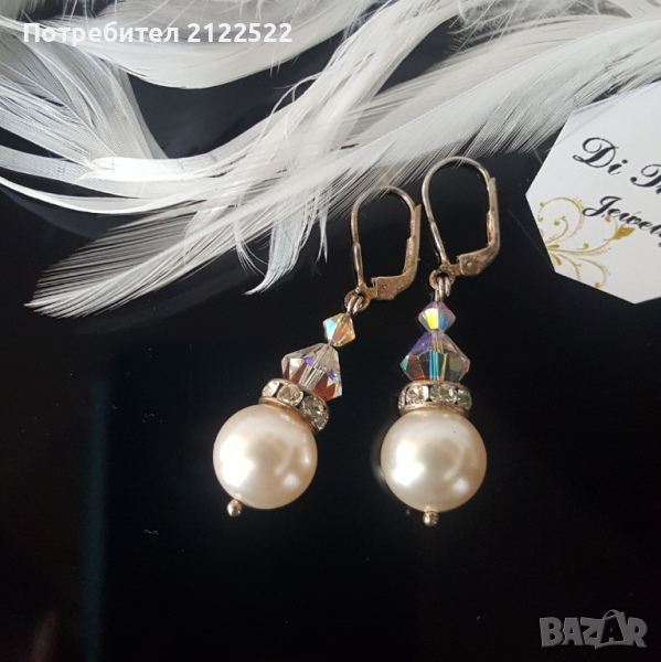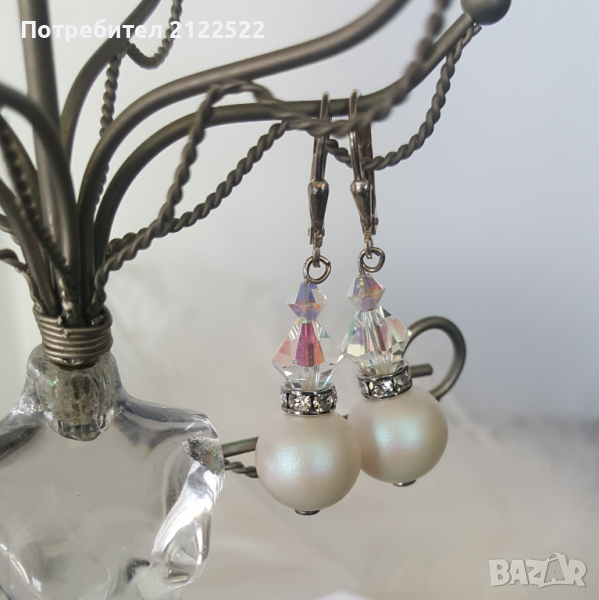 Висящи обеци с кристали или перли Сваровски. → Обява 36407420
