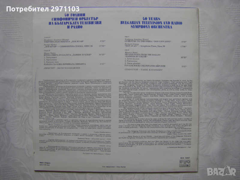 Грамофонна плоча - ВСА 12287 - 40 години СОБТР. Дир. Васил Казанджиев