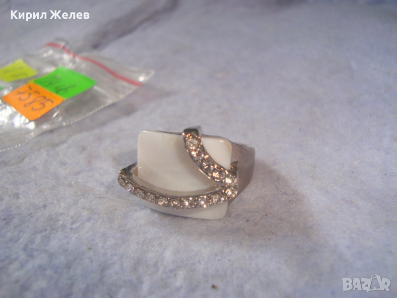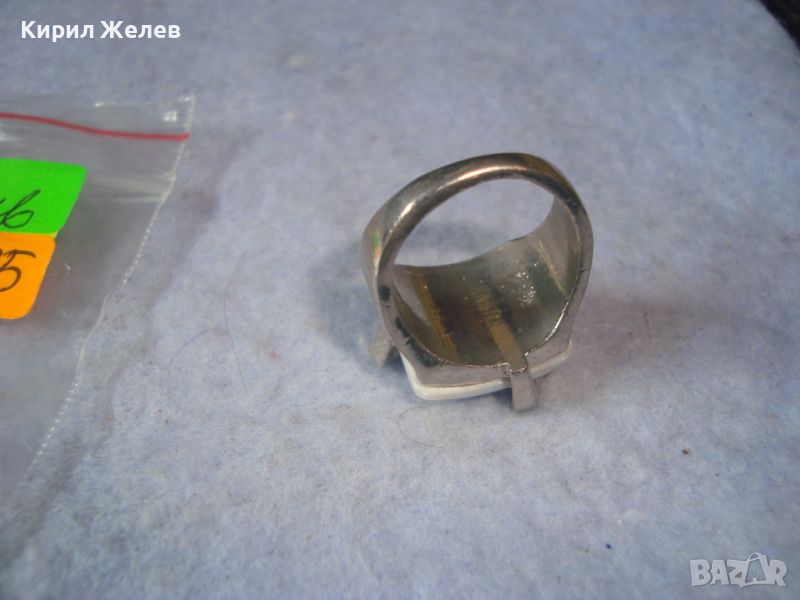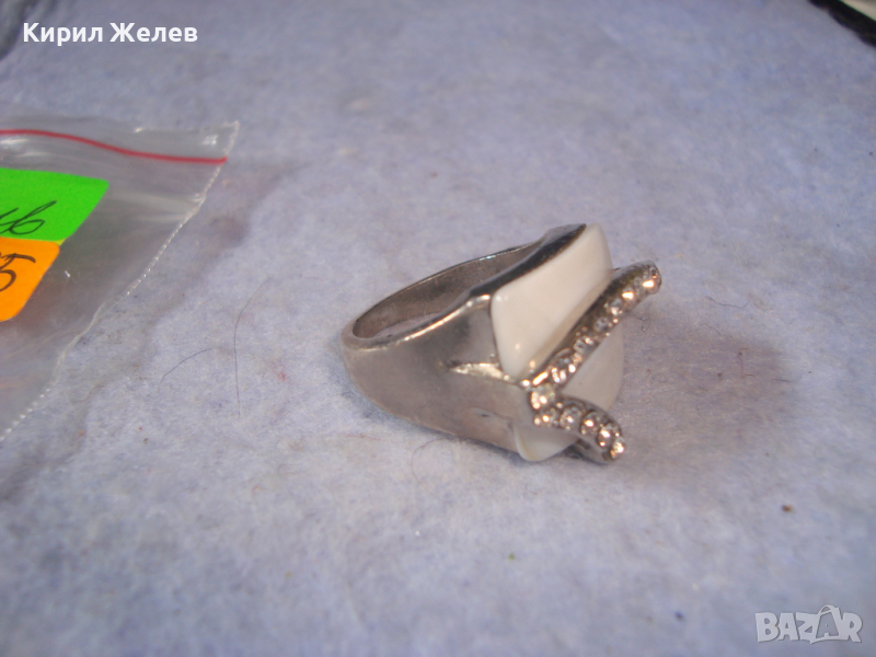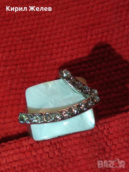 ПОСРЕБРЕН СТИЛЕН СКЪПОЦЕНЕН АРТ ДЕКО СЕДЕФЕН ПРЪСТЕН с ЦИРКОНИ 7585