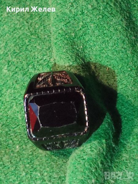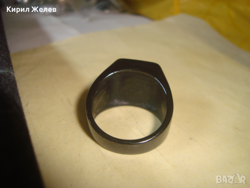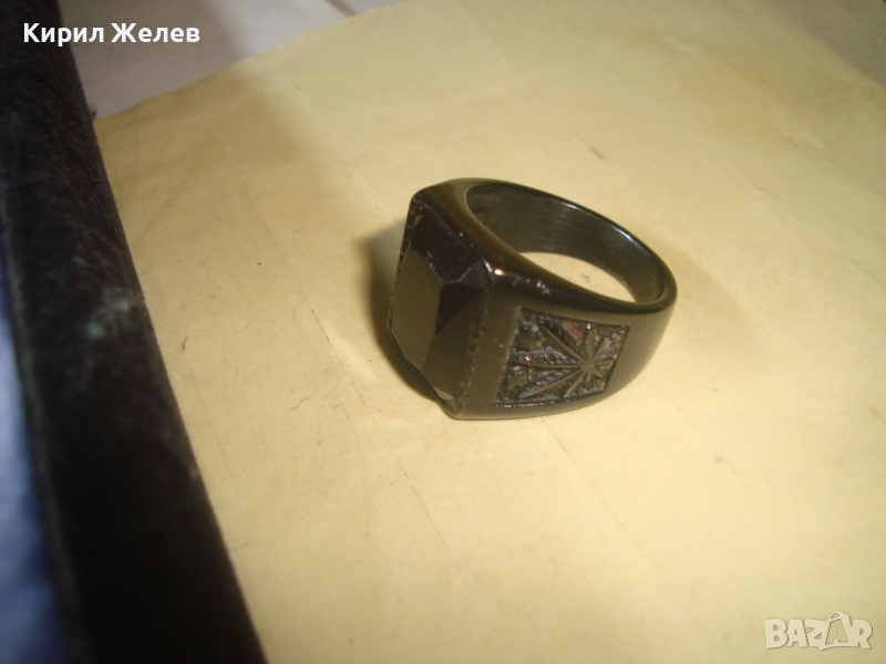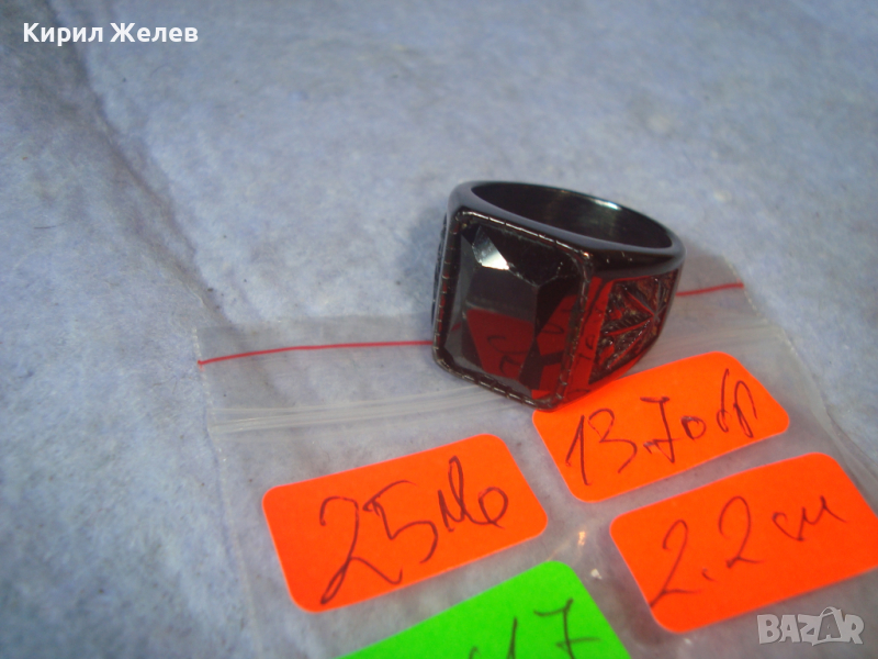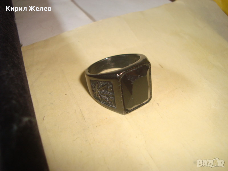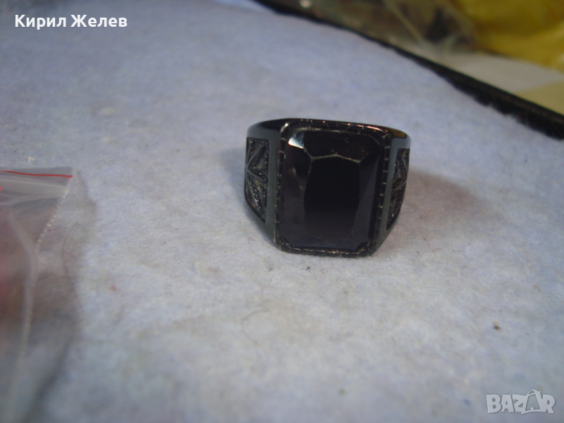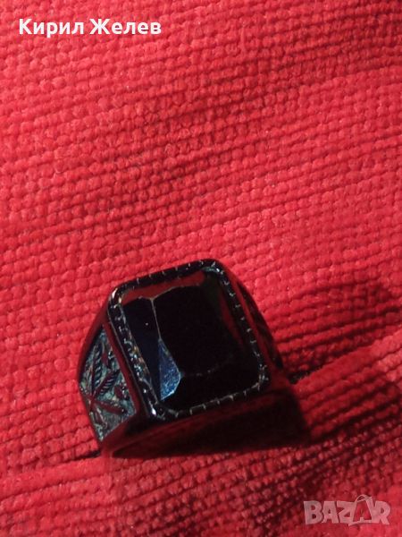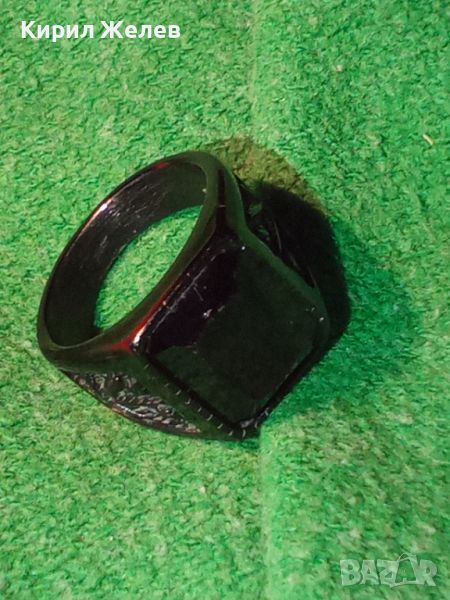 КРАСИВ СТОМАНЕН ПРЪСТЕН с ЧЕРЕН ФАСЕТ - КРИСТАЛ ЛАКИРАНА БЛАГОРОДНА НЕРЪЖДАЕМА СТОМАНА 26617
