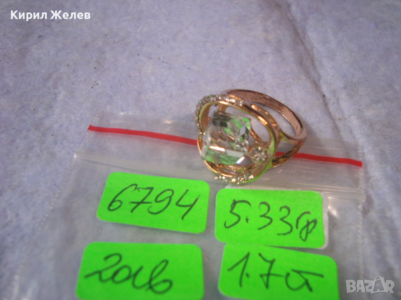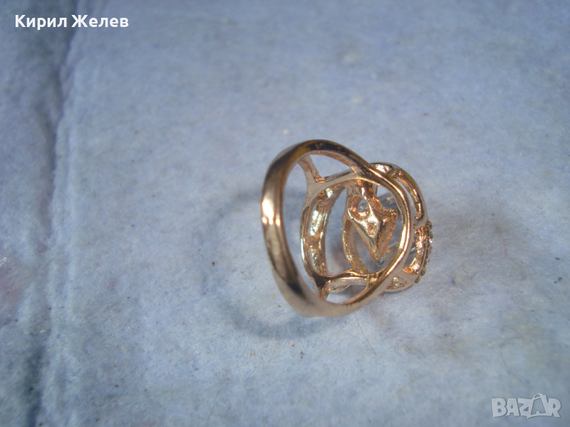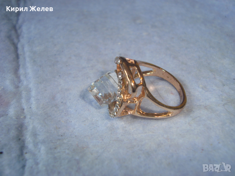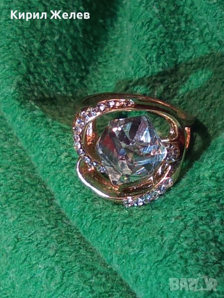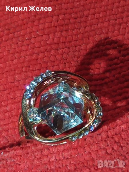 ПОЗЛАТЕН МОДЕН АРТ ПРЪСТЕН с ГОЛЯМ КРАСИВ ЮВЕЛИРЕН КРИСТАЛ и ЦИРКОНИ 6794