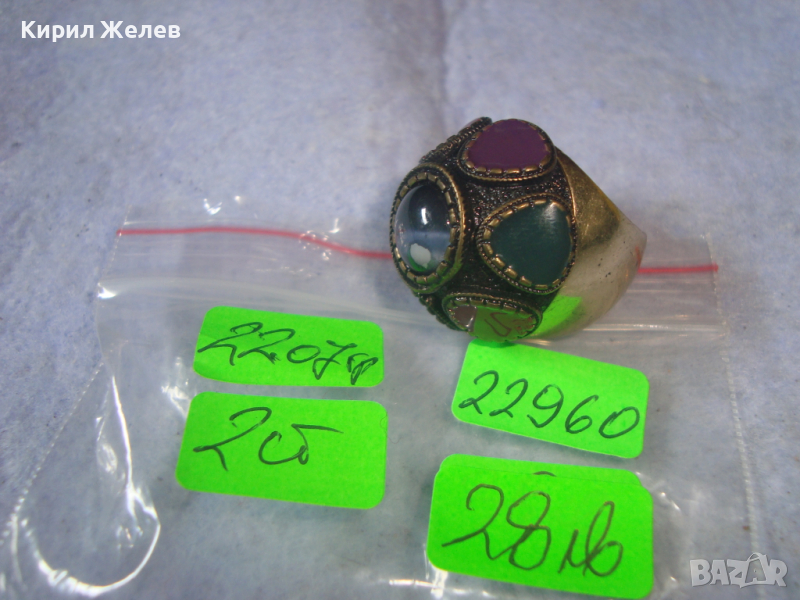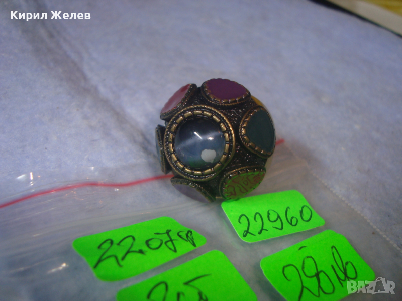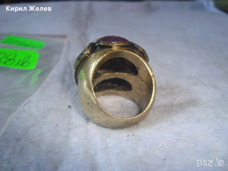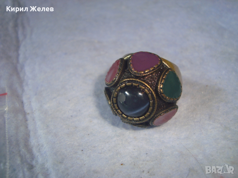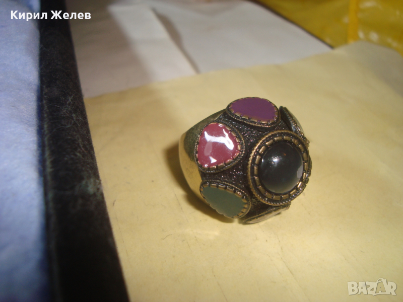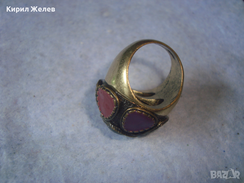 ПОЗЛАТЕН ЕМАЙЛИРАН БРОНЗОВ ЕТНОГРАФСКИ СТИЛ МАСИВЕН ПРЪСТЕН 22960